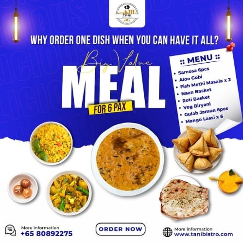 Enjoy a seafood experience with Tani Bistro Fish Family Feast Combo for 6. It’s a complete Indian meal, perfect for larger gatherings or family dinners or friends togetherings.