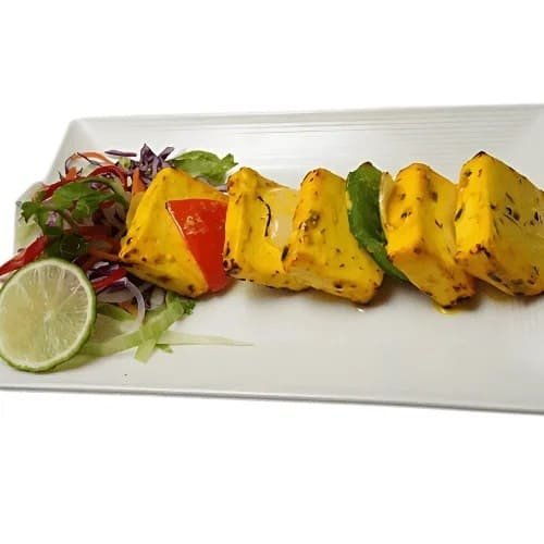 Paneer Tikka is a smoky, flavorful, and satisfying vegetarian dish! We marinate soft paneer cubes in a spiced yogurt blend with garlic, ginger, and aromatic Indian spices. This process infuses deep flavors into every bite. Grilled in a traditional tandoor, the paneer develops a lightly charred exterior while staying juicy inside. The smoky aroma and bold spices make it an irresistible appetizer. Served with mint chutney and fresh salad, it offers a perfect balance of spice and freshness. Whether you’re a vegetarian or love bold flavors, Paneer Tikka is a must-try!